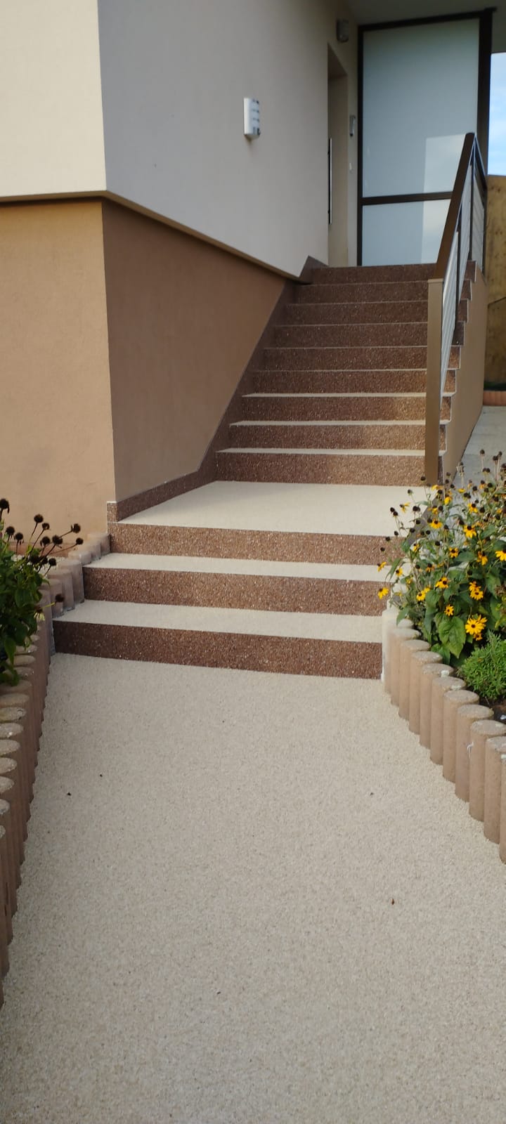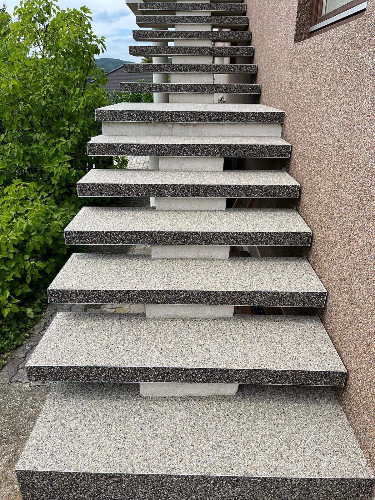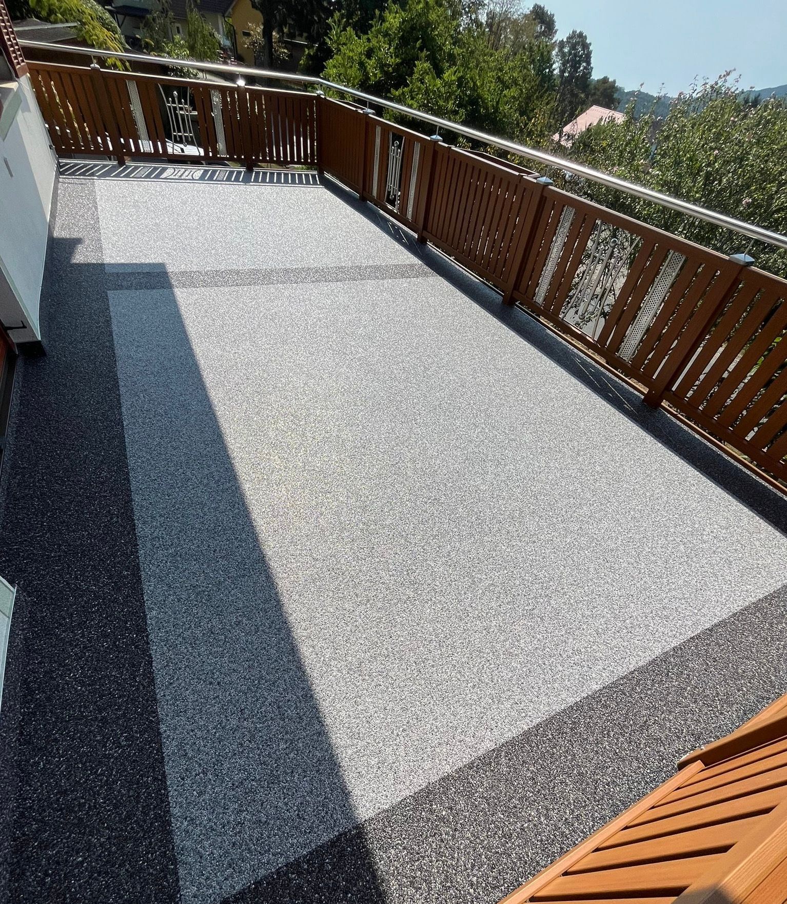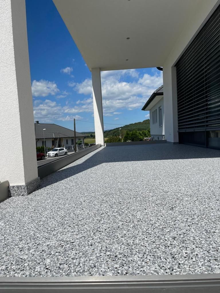 Der dekorative, fugenlose Boden- und Wandbelag für den Innen- und Außenbereich. Ein Steinteppich ist frostbeständig, wasserdurchlässig und vielseitig einsetzbar – perfekt für Terrassen, Stiegen, Eingangsbereiche oder Einfahrten. Dank seiner rutschfesten und pflegeleichten Oberfläche eignet er sich auch ideal für Innenräume und Nassbereiche wie Duschen.