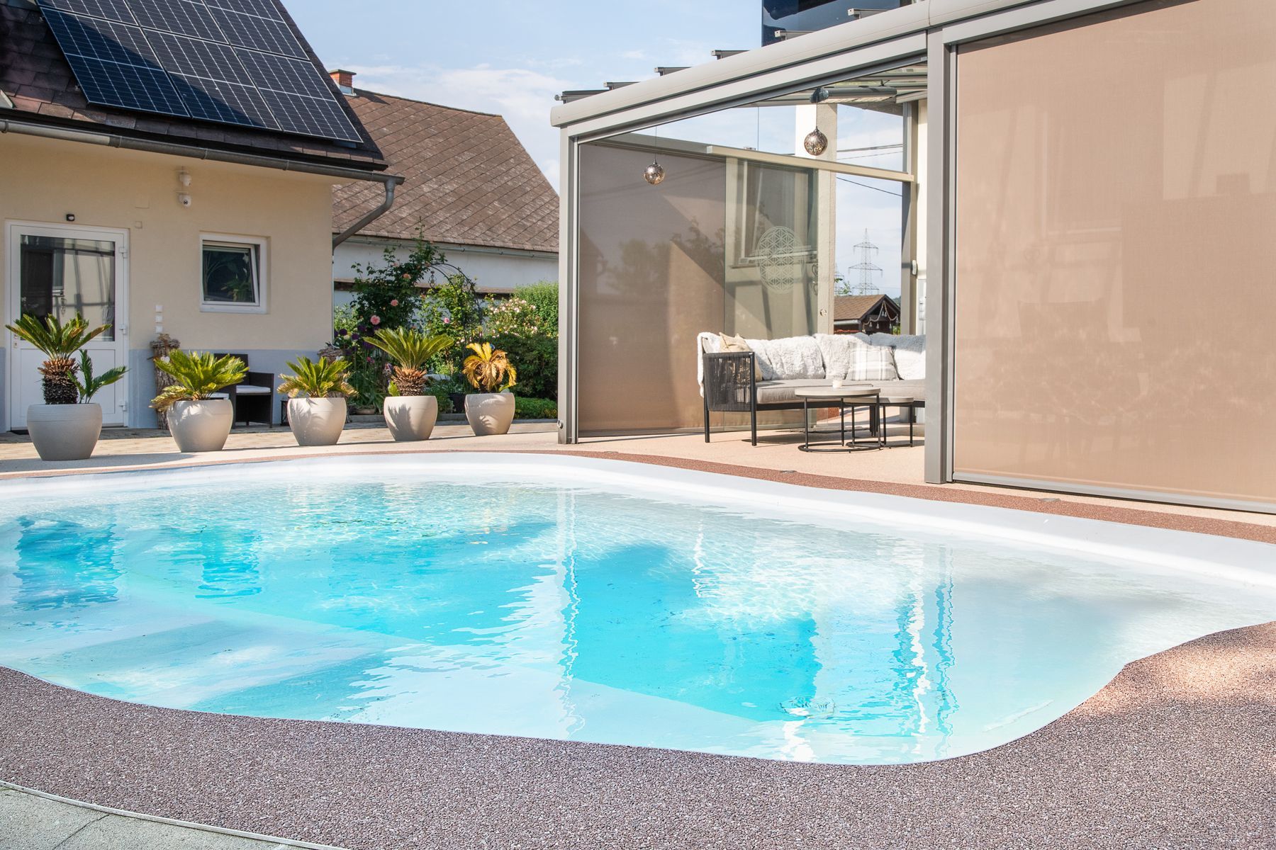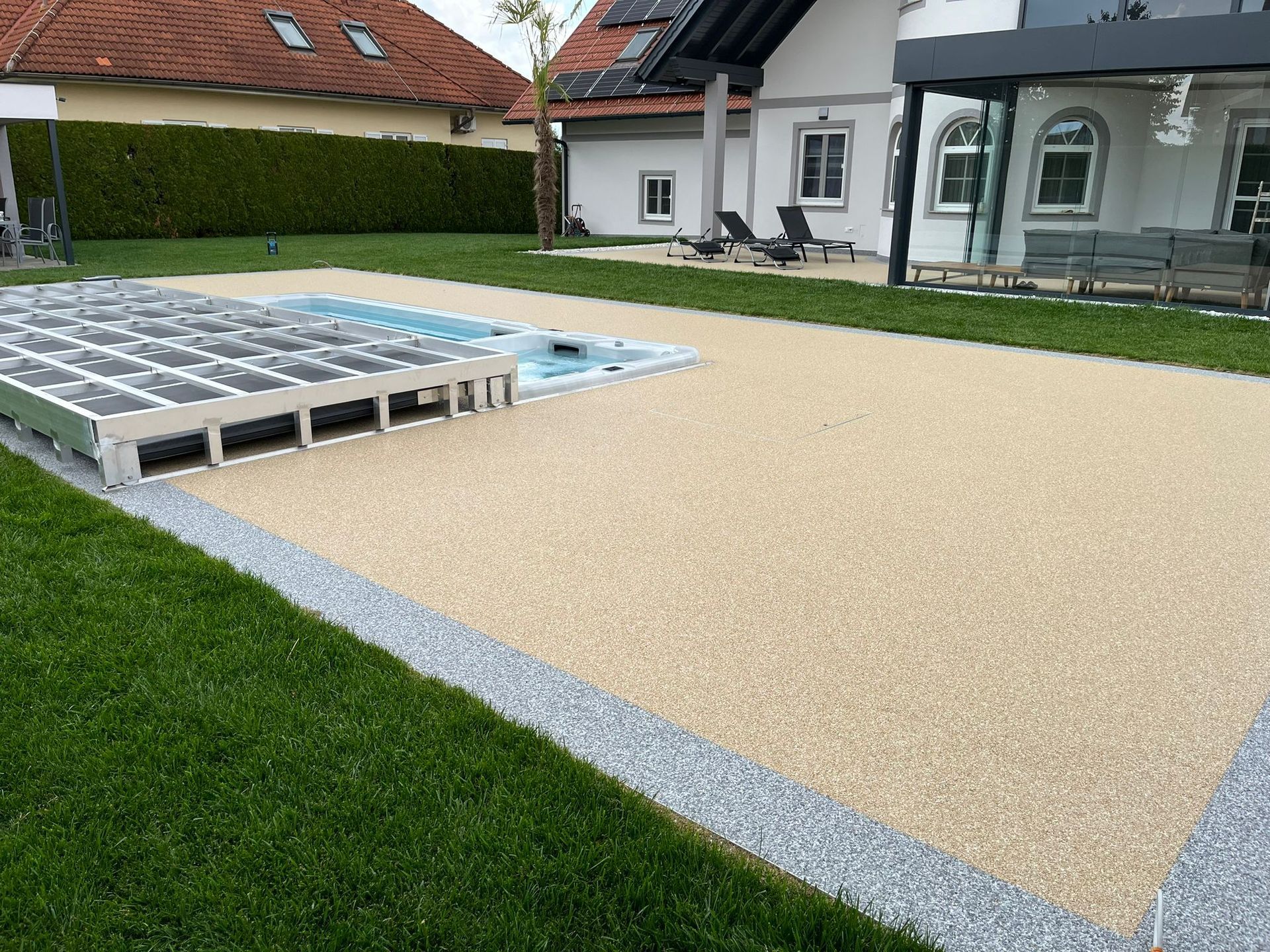 Sie möchten heiße Tage entspannt im eigenen Garten genießen? Wir sind Ihr Partner für die professionelle Poolgestaltung! Gemeinsam mit unseren Partnerfirmen bieten wir Ihnen maßgeschneiderte Lösungen für Poolbeschichtungen – langlebig, rutschfest und optisch ansprechend.